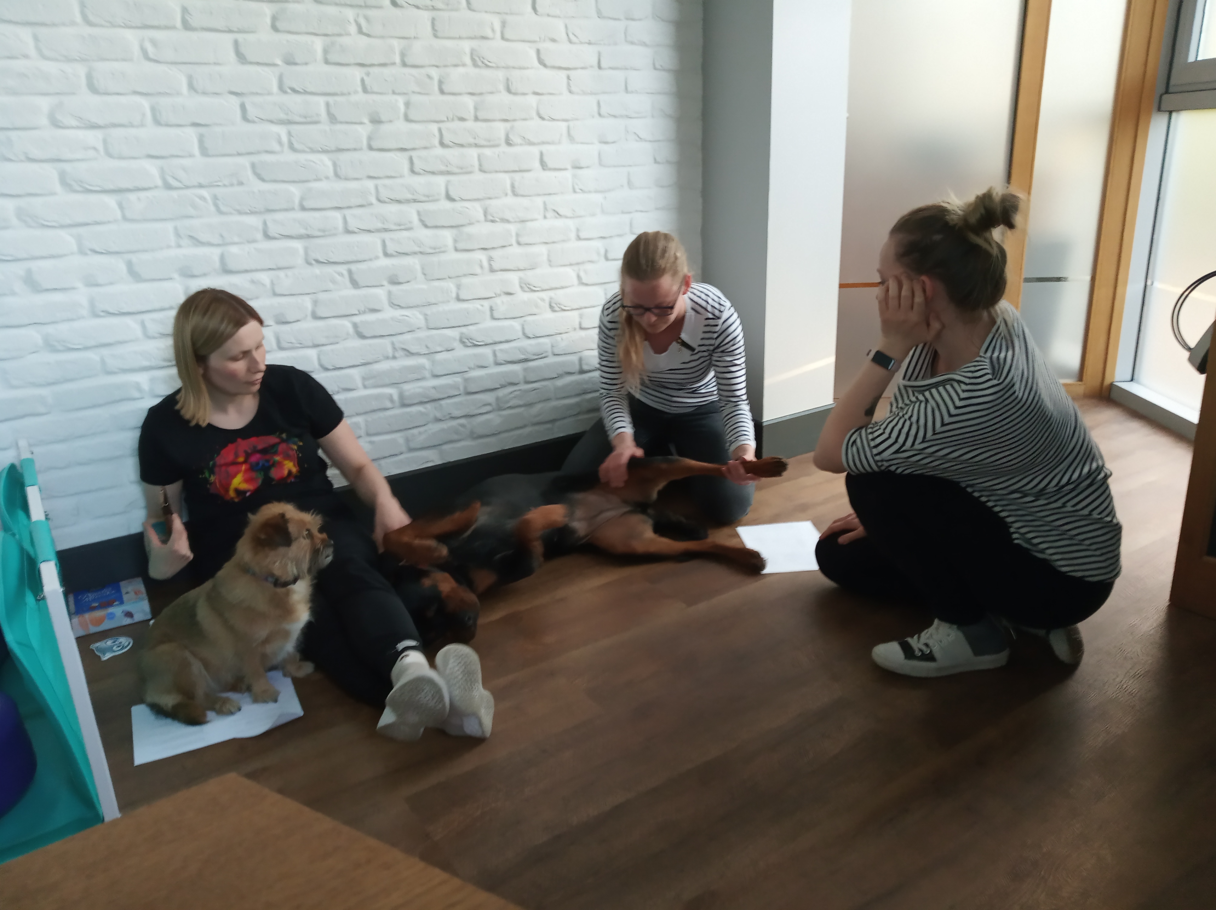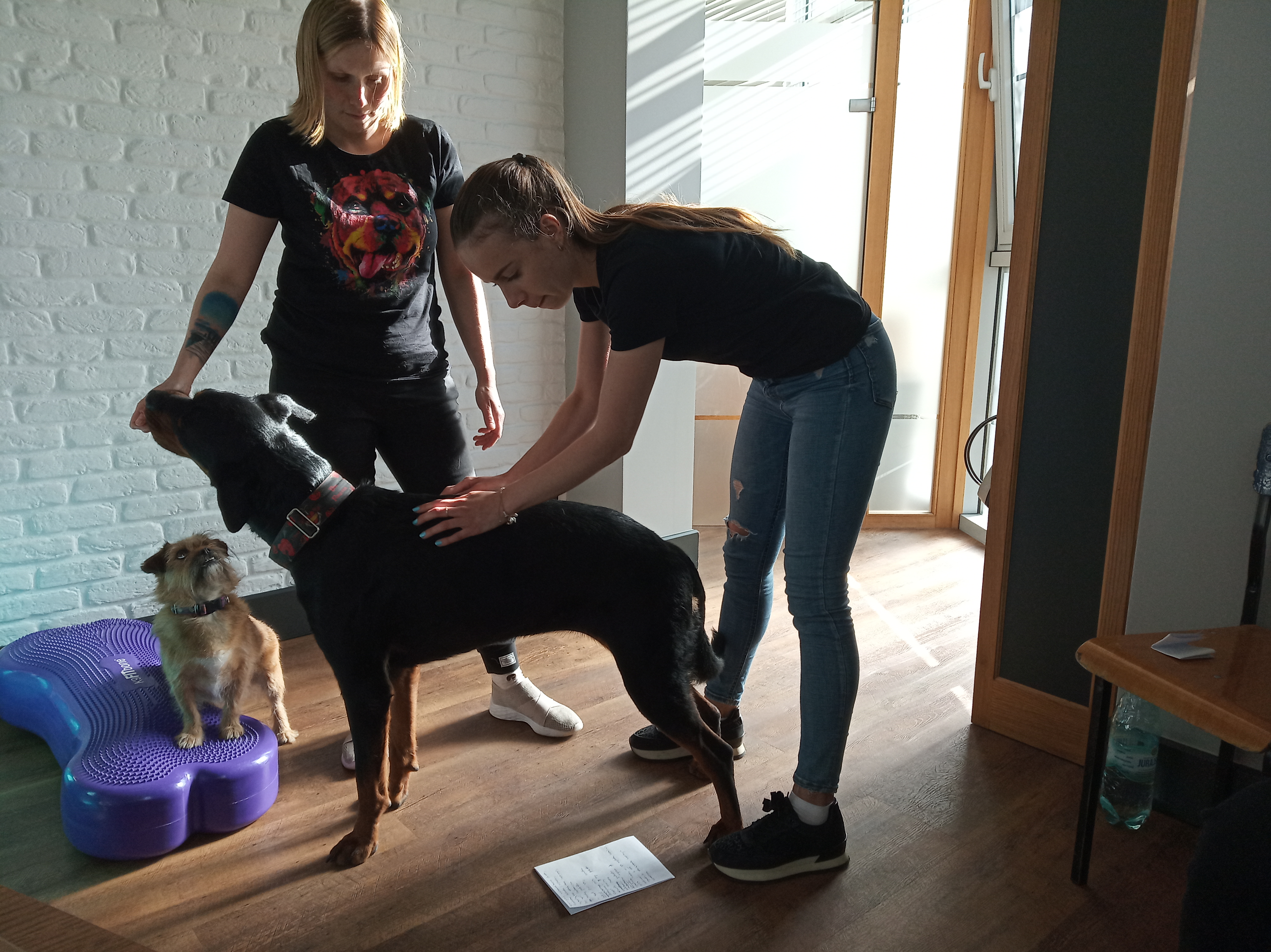 Oba kursy kończyły się testami (120 pytań z zoofizjoterapii i 100 z zoopsychologii), po zaliczeniu których nastąpiły egzaminy komisyjne. Sprawdzian umiejętności praktycznych z zoofizjoterapii odbywał się w warunkach klinicznych – dzięki uprzejmości Pani Doktor Anny Kaniewskiej gościliśmy w Jej przychodni rehabilitacyjnej KanVet w Olsztynie.
