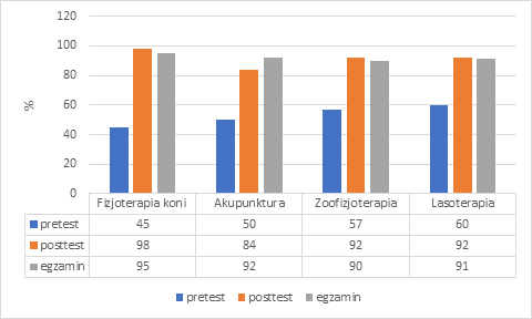 Wyniki post-testów są bardzo zbliżone do ocen uzyskanych na egzaminach praktycznych, co potwierdza osiąganie przez Słuchaczy efektów uczenia się w zakresie wiedzy i umiejętności oraz kompetencji społecznych.
