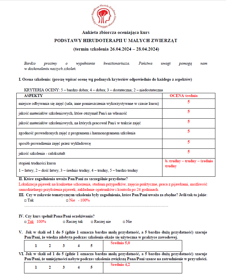 Po pomyślnie zaliczonym teście – uczestniczki otrzymały zaświadczenia i certyfikaty. W prezencie otrzymały pijawki na pierwszy samodzielny zabieg.