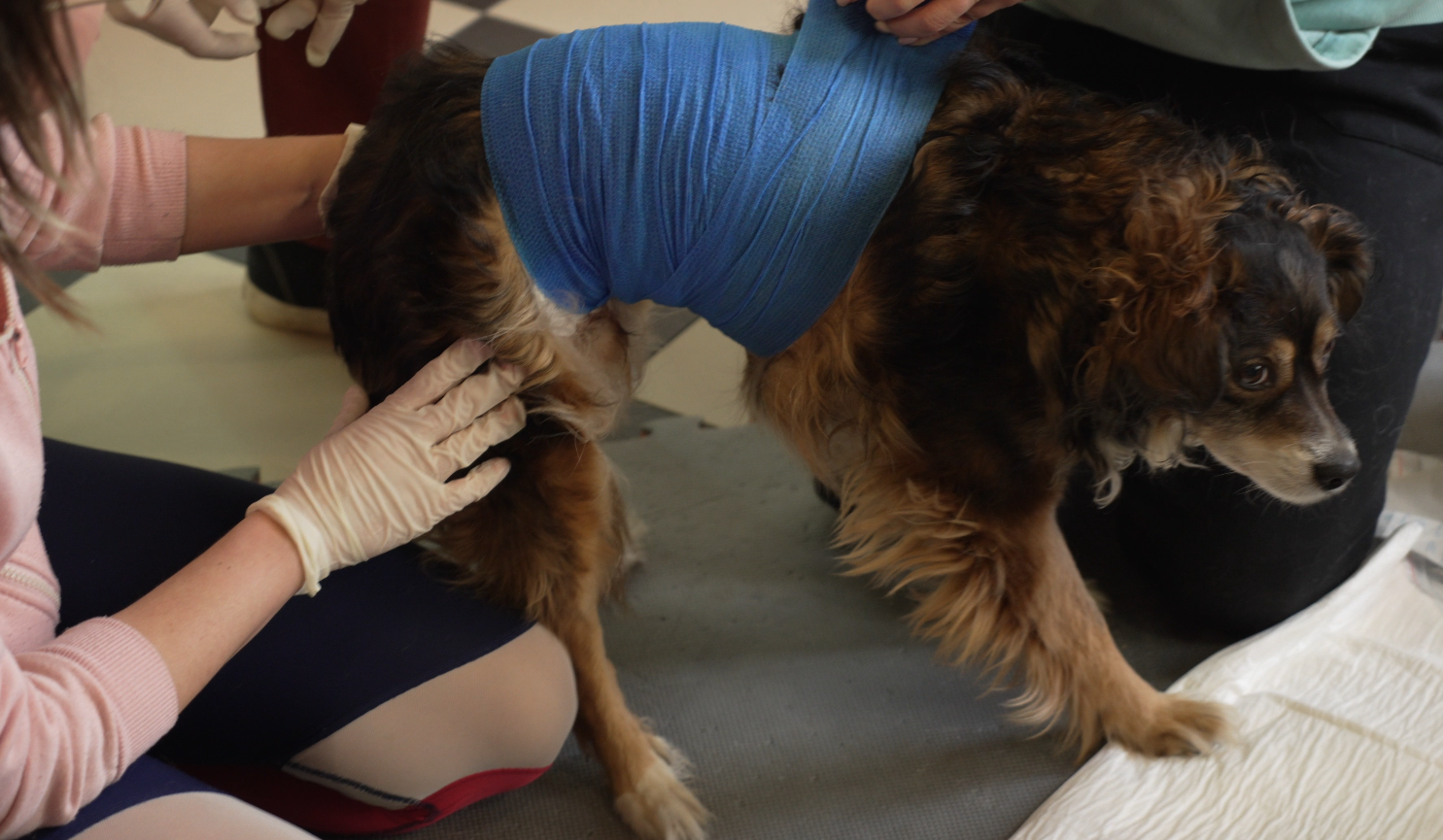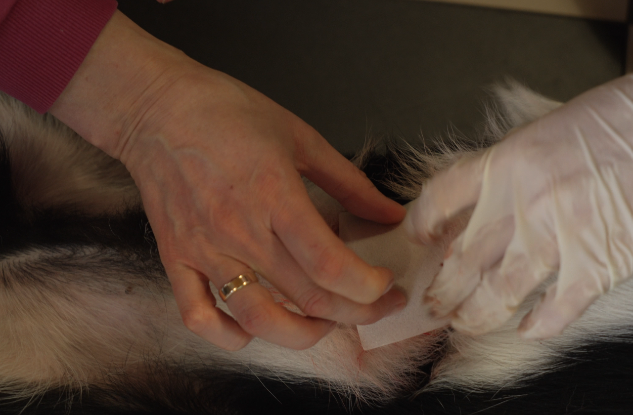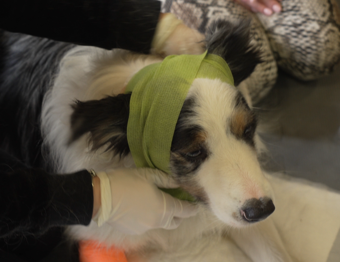 Czas na zdjęcie pijawek, dezynfekcję ranek i założenie opatrunków. Właścicielka psów została poinstruowana, jak postępować w ciągu kolejnych godzin po zabiegu.