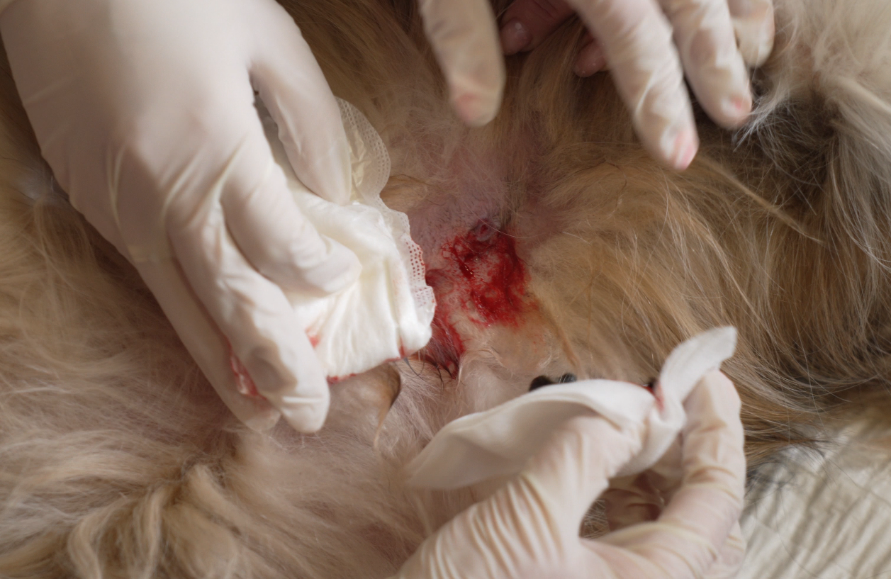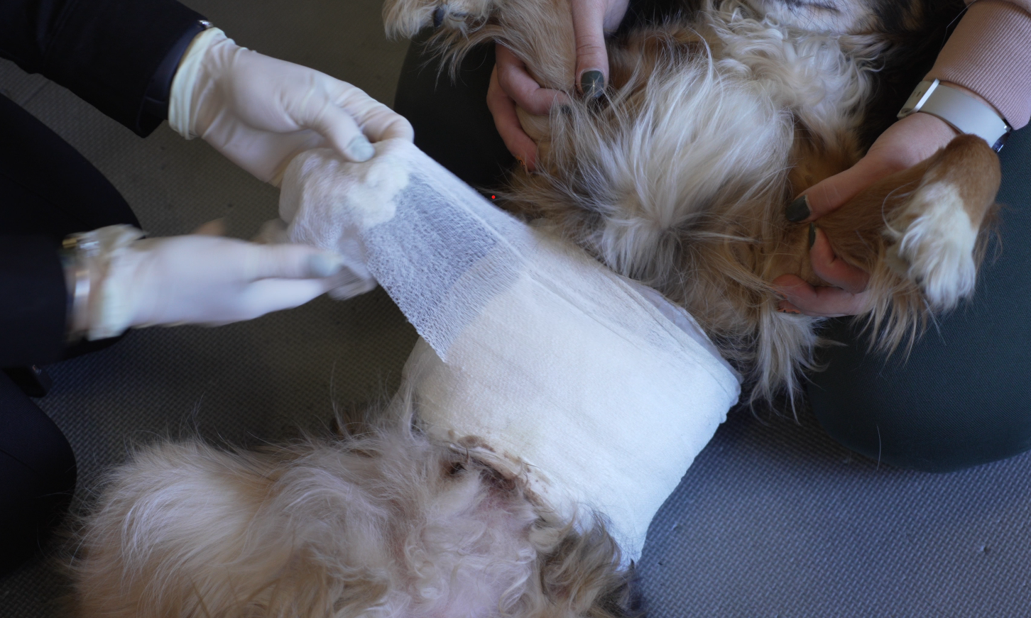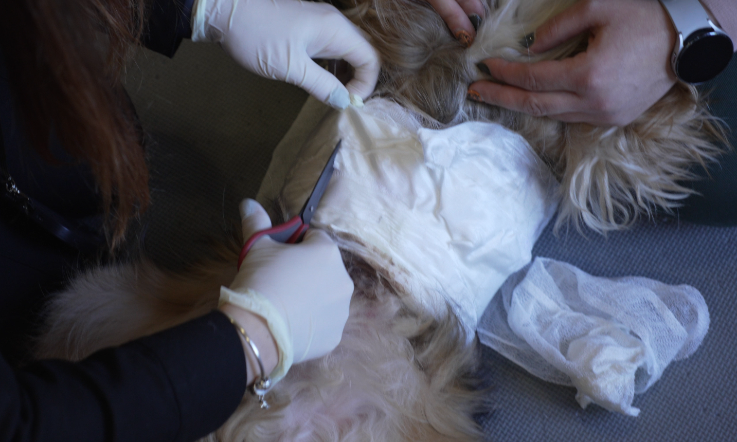 Czas na zdjęcie pijawek, dezynfekcję ranek i założenie opatrunków. Właścicielka psów została poinstruowana, jak postępować w ciągu kolejnych godzin po zabiegu.