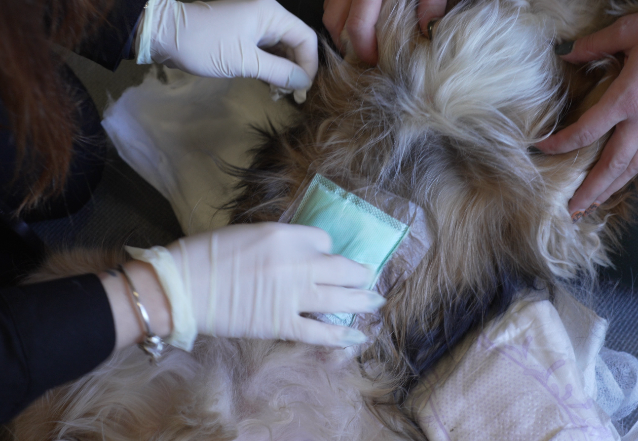 Aplikacja pijawek, następnie monitorowanie zachowania pacjentów przez ok 40 minut. Wszystkie psy bardzo dobrze zniosły tę część zabiegu – były spokojne, jakby wiedziały, ze to dla ich dobra.