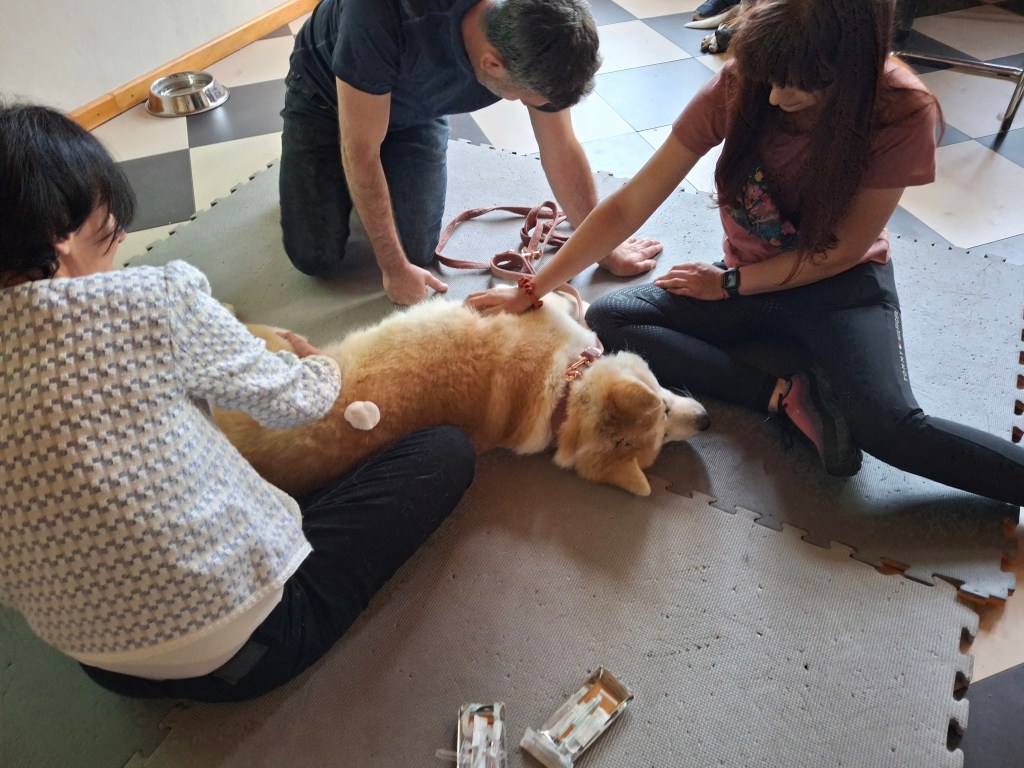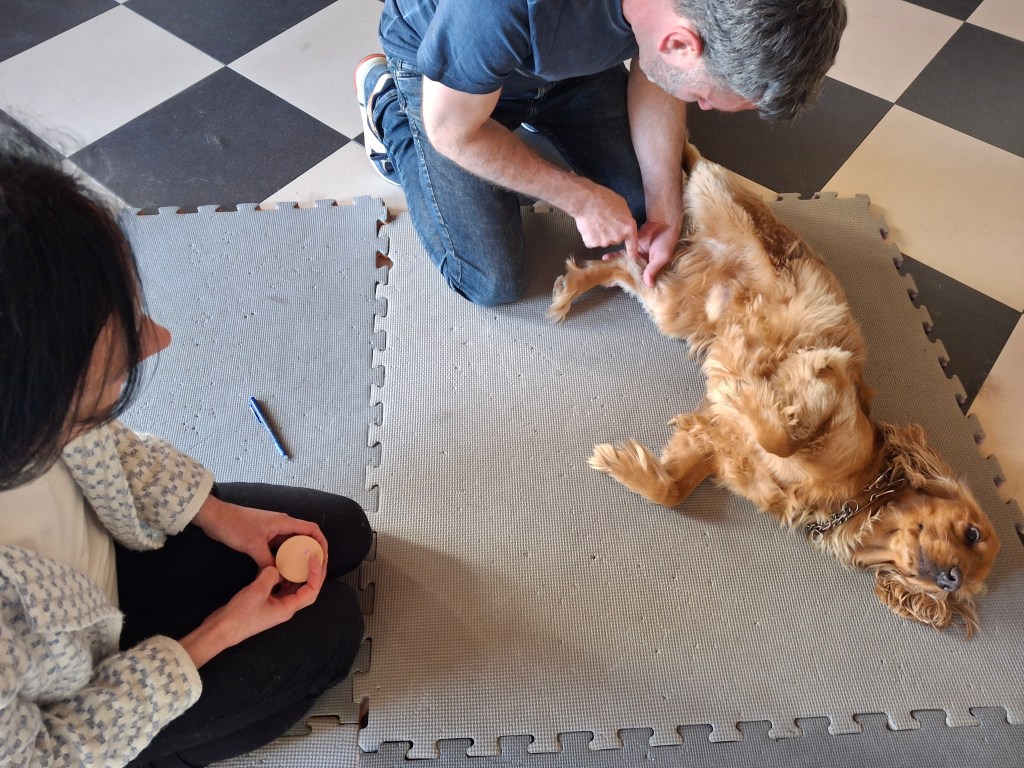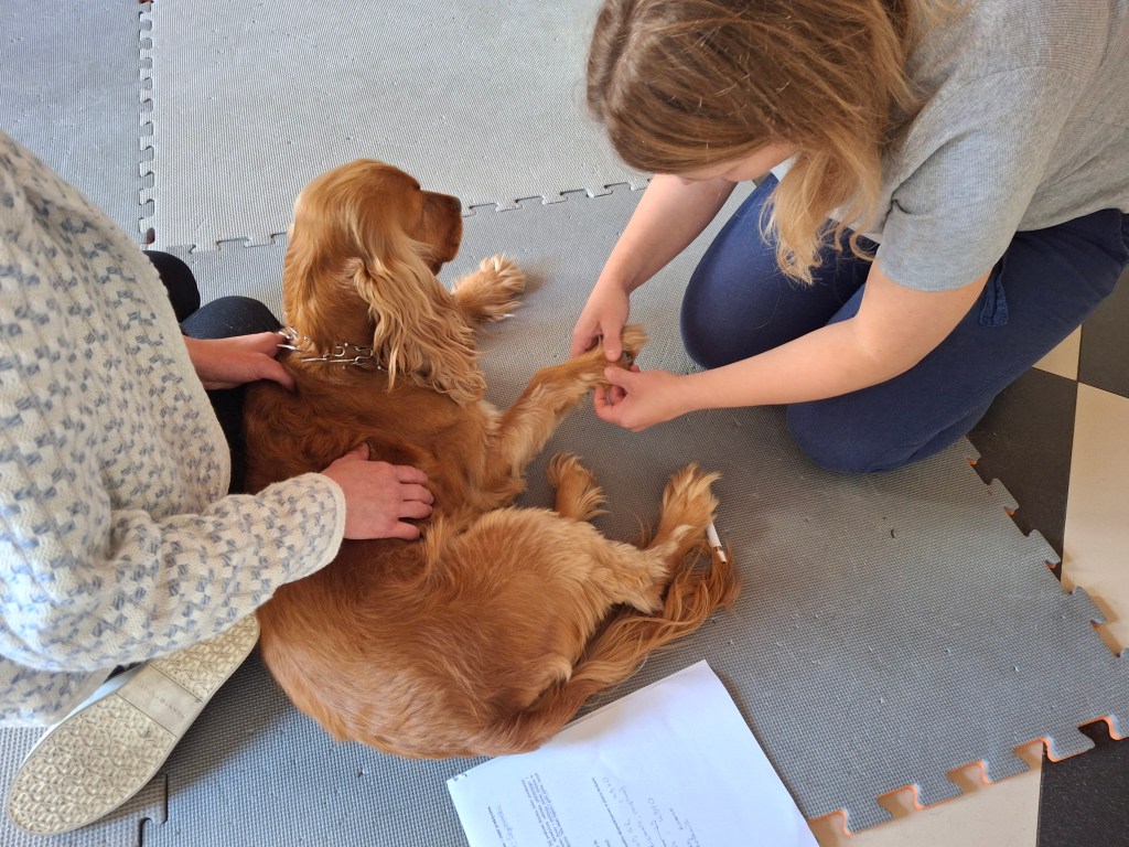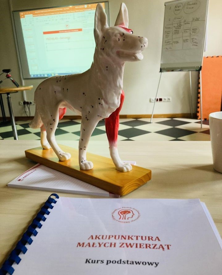 Oczywiście nie ma mowy o aplikacji igieł w określonym punkcie akupunkturowym u zdrowego zwierzaka. Uczestnicy kursu dokładnie lokalizują miejsce, a technikę wkłuwania trenują na sztucznej skórze. Jeśli na kursie są psy z dolegliwościami, stają się one prawdziwymi pacjentami i poddawane są terapii. Generalnie pieski czują się u nas dobrze.