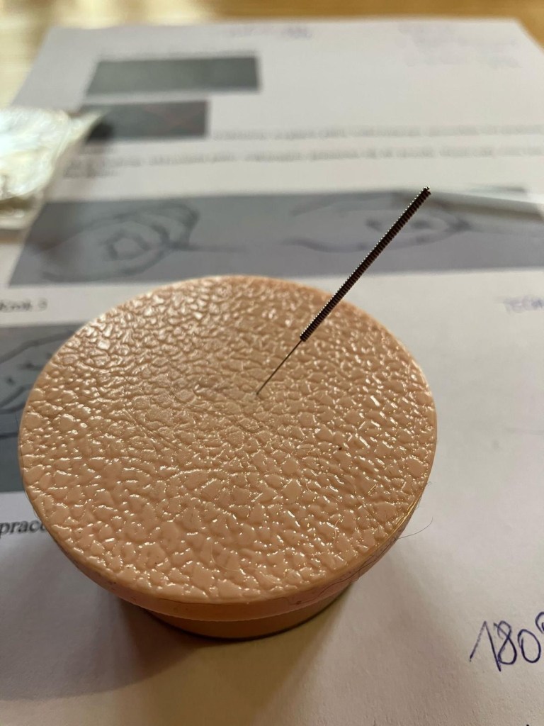 Kurs ma profil praktyczny – zajęcia takie stanowią ponad 66% wymiaru godzinowego. Praca na modelach, aplikacja igieł na własnym ciele, praca z prawdziwymi pacjentami (to głównie psy) – to kolejne etapy praktyki.